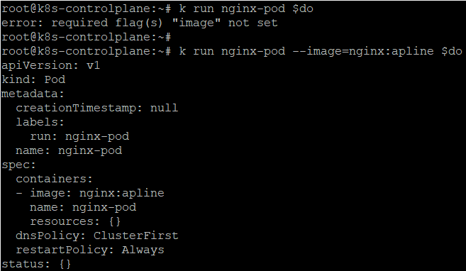 export do="--dry-run=client -o yaml" # k create deploy nginx --image=nginx $do