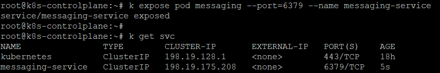 k expose pod messaging --port=6379 --name messaging-service