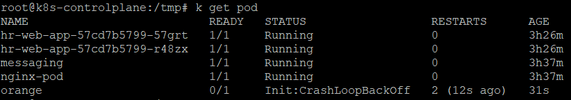 orange 파드가 현재 실행이 아닌것을 확인 할 수 있다.