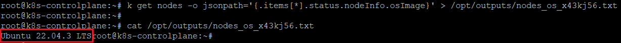 11. Use JSON PATH query to retrieve the osImages of all the nodes and store it in a file /opt/outputs/nodes_os_x43kj56.txt.