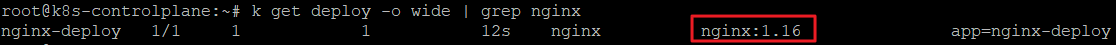 k create deployment nginx-deploy --image=nginx:1.16 --replicas=1