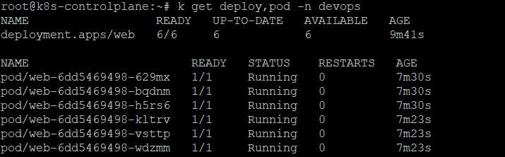 - Run the deployment in the devops namespace. The namespace has already been created