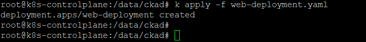 - The web deployment yaml file is /data/ckad/web-deployment.yaml.